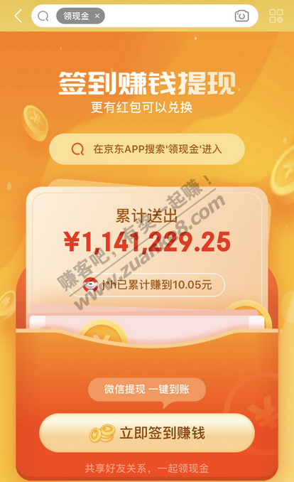 【入口】京东App搜索“领现金”进入。