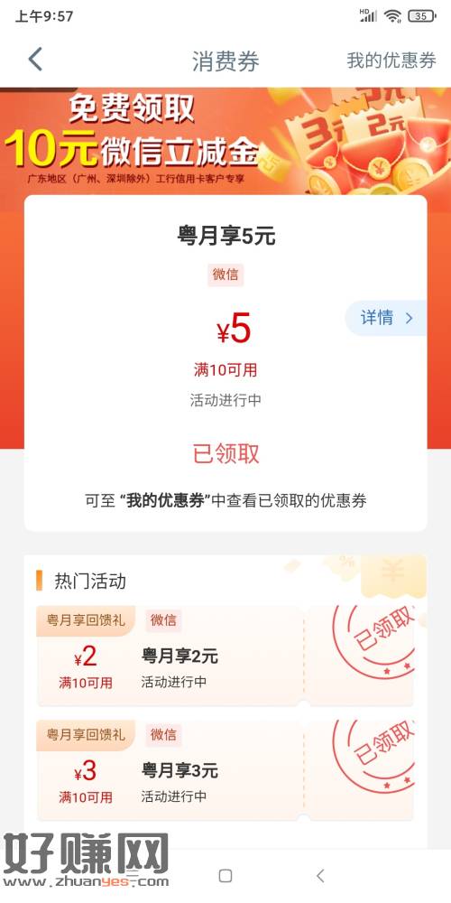 工行app 搜索工行消费季 广东除深圳广州外 信用卡客户可领 一共10块