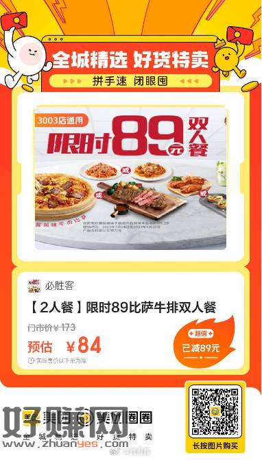 必胜客双人餐84,全国通用,堂食外卖均可
