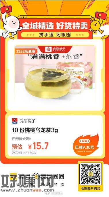 良品铺子|10 份桃桃乌龙茶3g,15.7