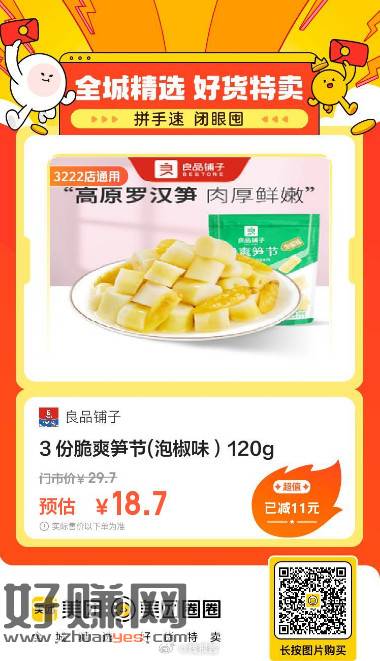良品铺子|3 份脆爽笋节(泡椒味),18.7