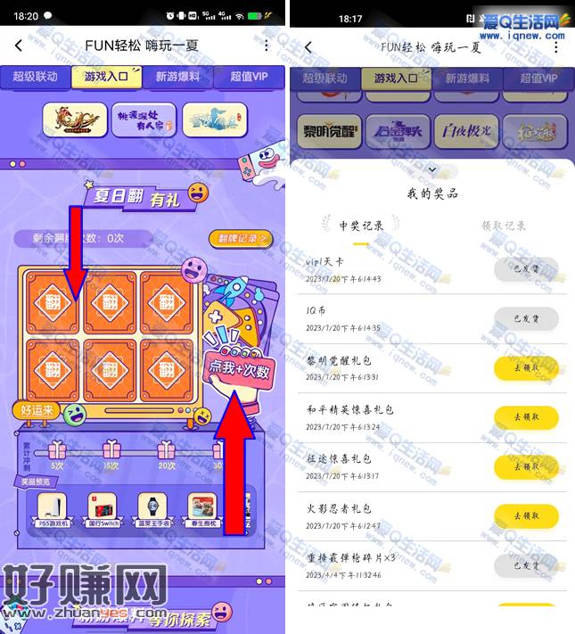 活动页面下拉-找到翻盘活动-点击【点我+次数】做任务后抽奖-中奖去翻牌记录里面兑换