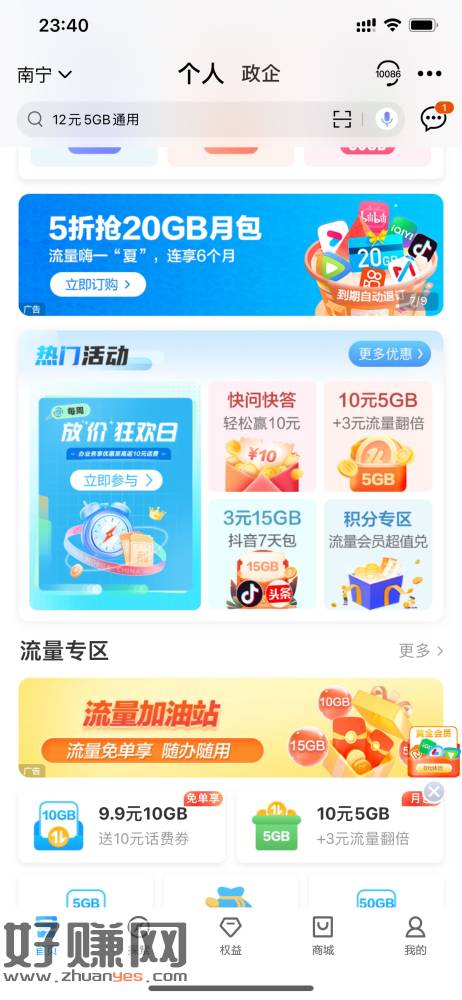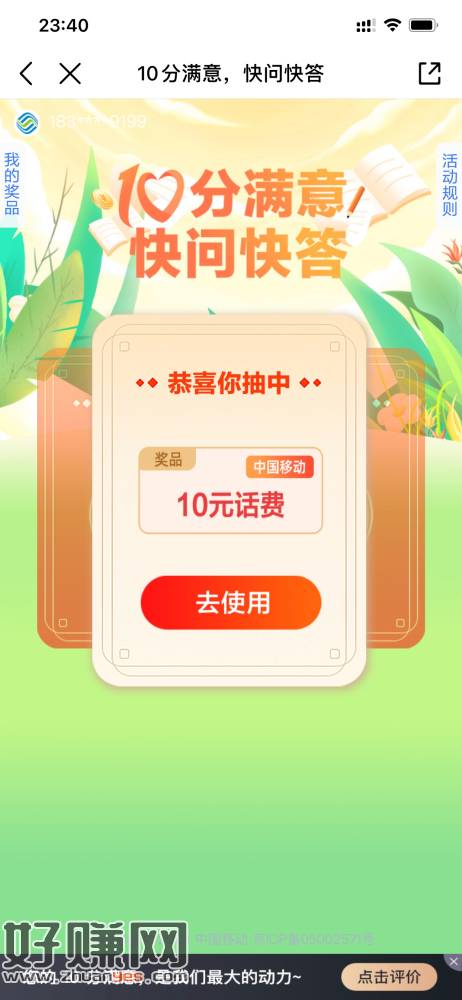 移动app,热门活动,快问快答10元话费,貌似是必得。