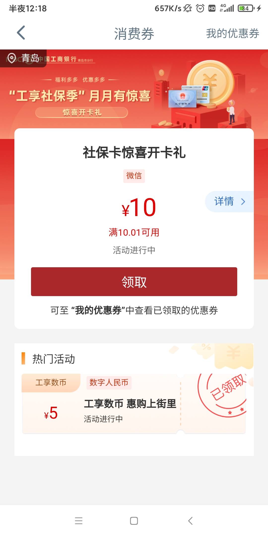大妈青岛,有青岛工行社保卡的去领吧,10毛,领了仅限社保卡使用,可恶,我没有,领了没用啊