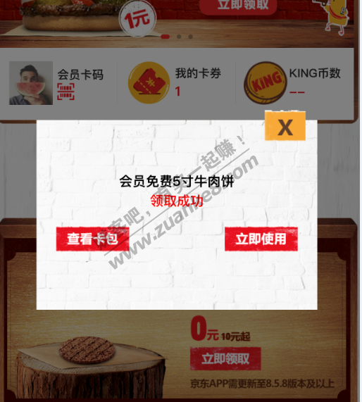 京东P员免费领取汉堡王肉饼