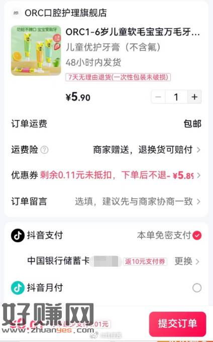 儿童牙膏叠店铺券????0.01