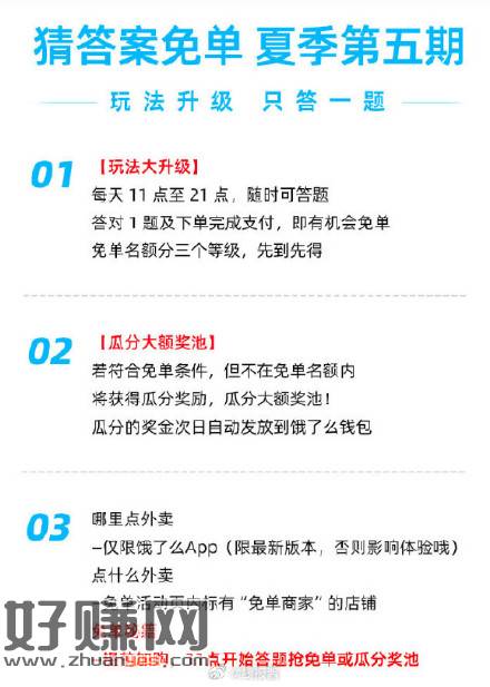 #饿了么免单# “猜答案免单”第五期来了期免单玩法大升级!
