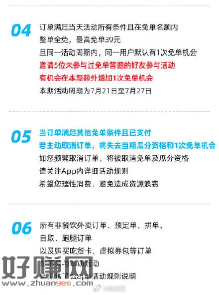 7月21日至7月27日,每天11点至21点,随时可答题,答对1题即可抢最高39元免单,免单奖励分三个等级,先到先得。