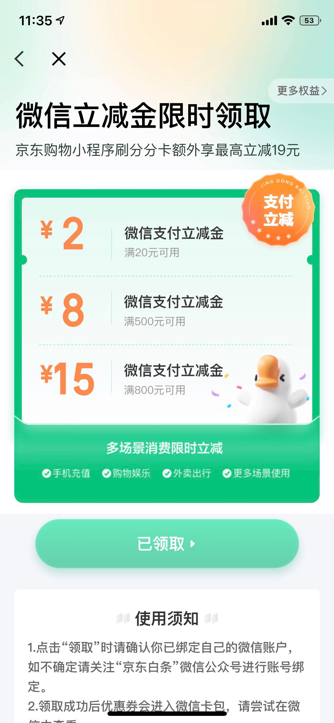 京东金融的白条分分卡立减更新了,又能领25。但是修复了多v多领 大缩水了