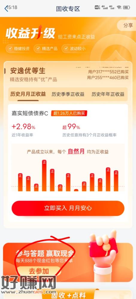 浦发APP右上角收益升级-参与答题-零钱