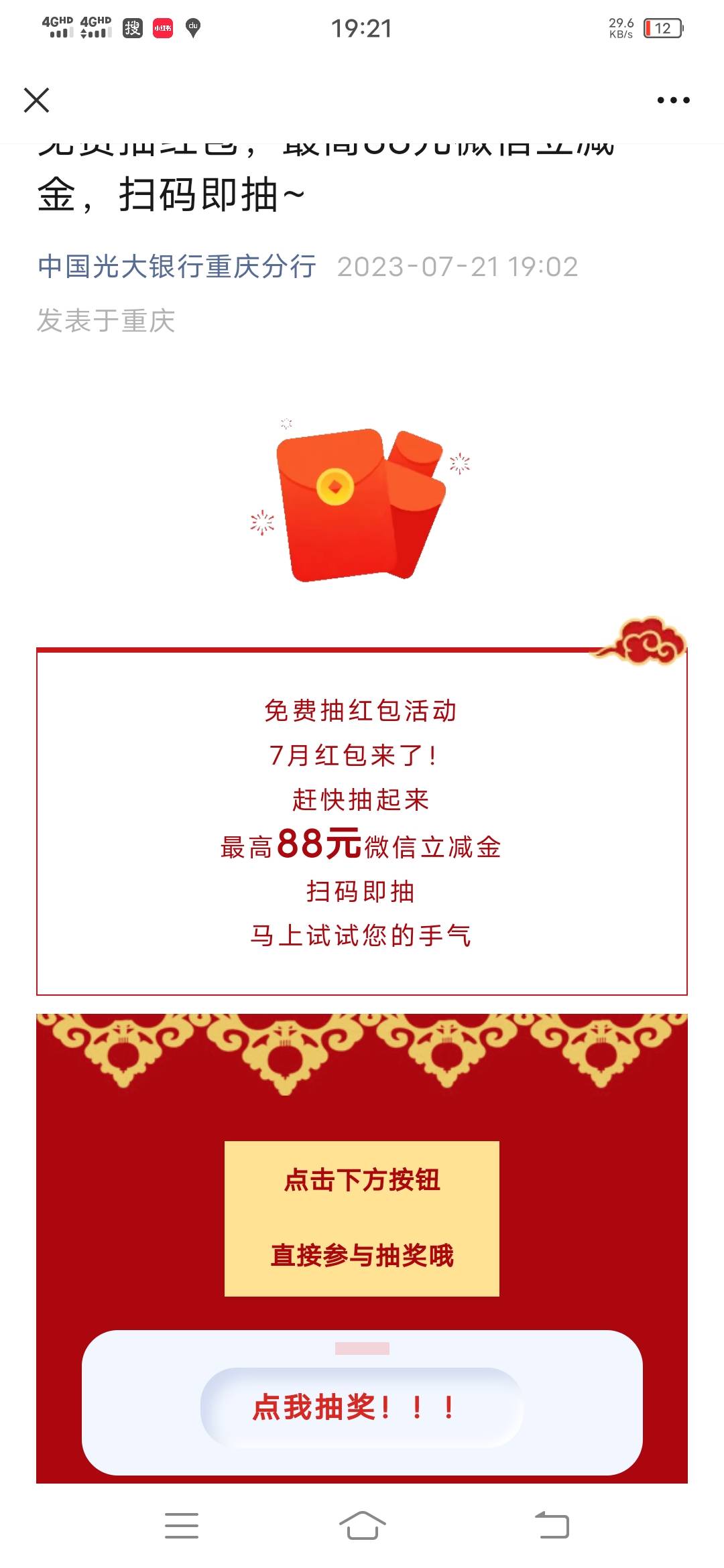 光大重庆分行公众号抽奖最高88我抽了2毛,好运的老哥上