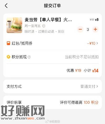 美团app搜,团团神券,右上,扫一扫麦当劳标志,概率20-10,只能买直播间麦当劳,14三份早餐比较划算,其他都不太行