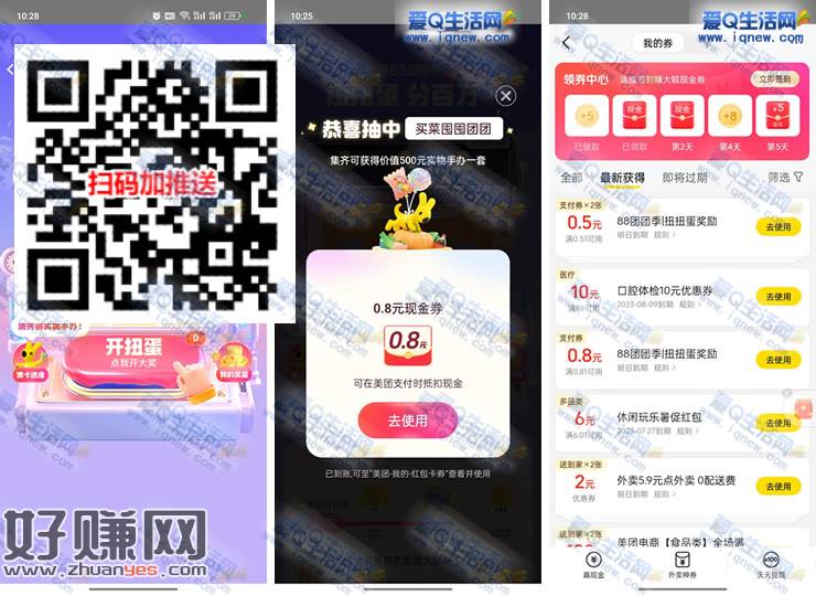 美团扭扭蛋抽最高888元现金券 亲测0.8+0.5+0.5现金券秒到