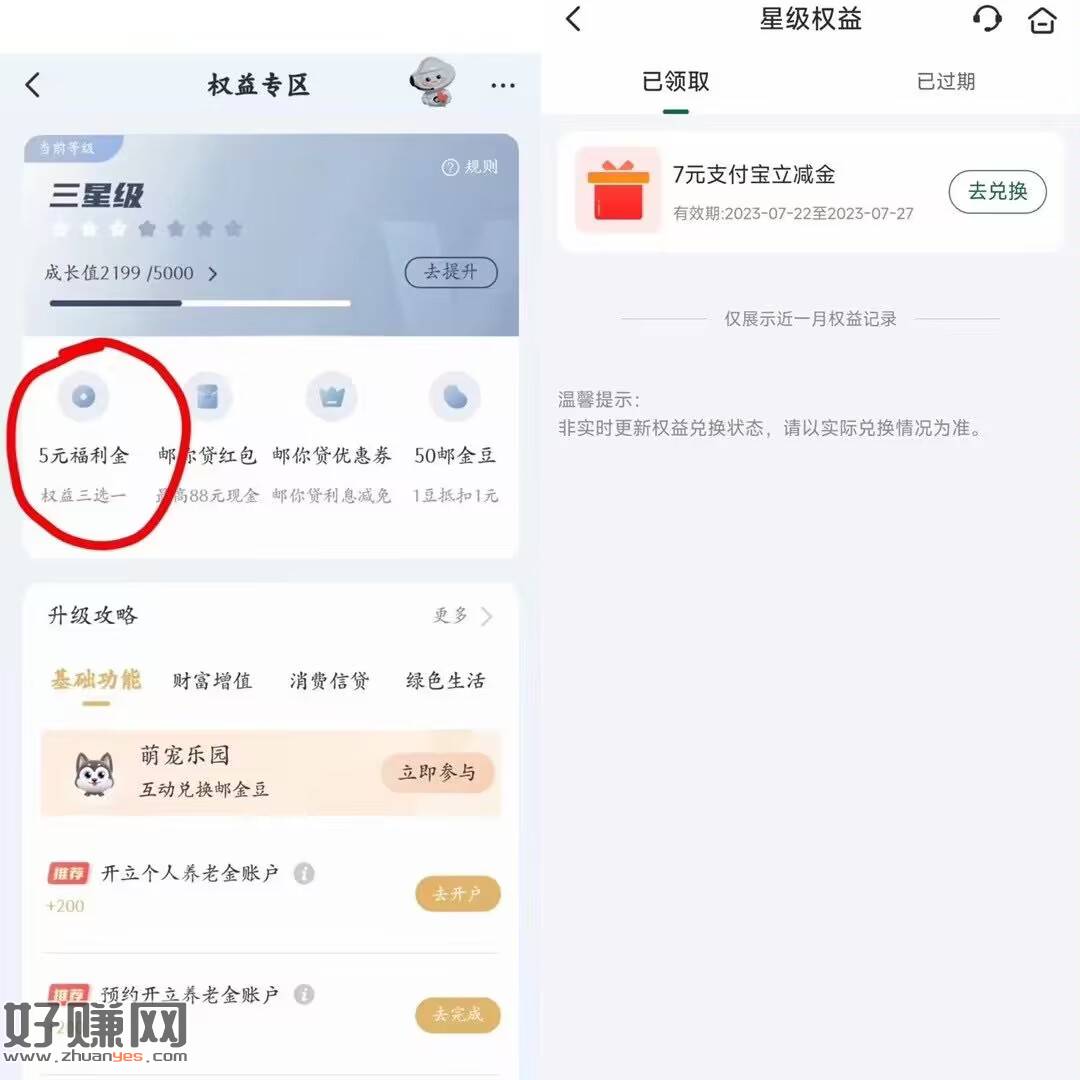 邮储,我的,权益,最低2星3元,3星5元类推京东卡或者立减金