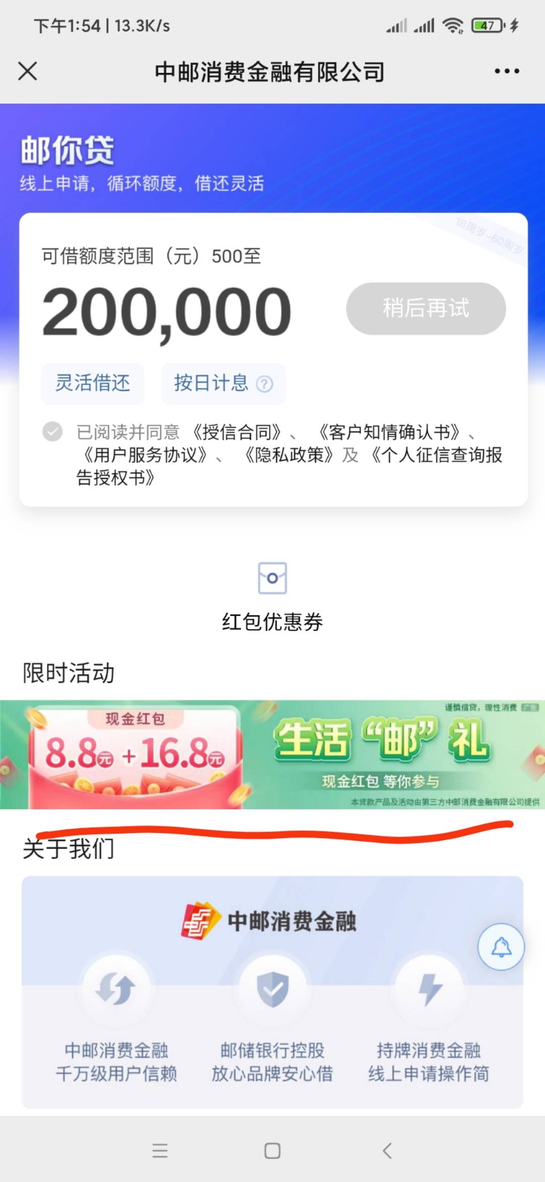 邮生活gzh-平台首页-邮你贷-先领8.8,再申请一下,激活8.8,提