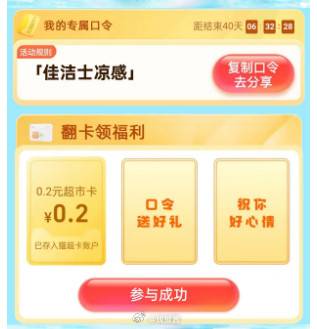 天猫超市-首页右下方悬浮图标“惊喜口令”-输入口令“佳洁士凉感”进入翻牌可领随机