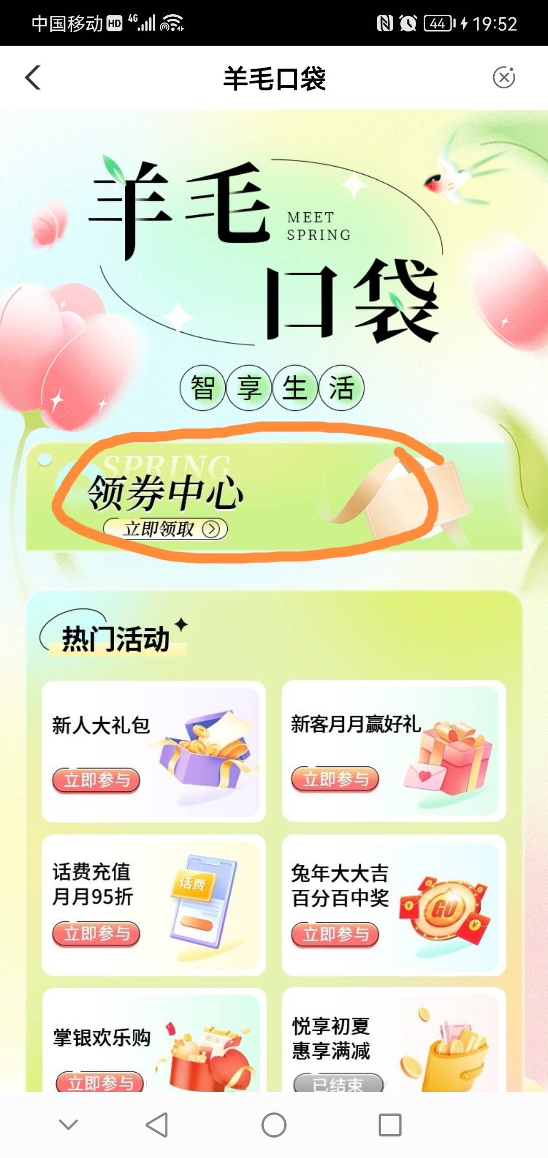 首发 湖北 不用填代码 羊毛口袋 领卷中心 领那张 51-50 的