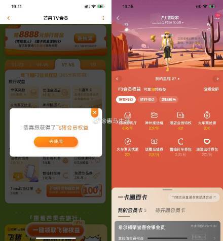 【芒果TV会员领飞猪F2/F3会员】限芒果会员参与!打开地址->直接领取飞猪权益->飞猪F2会员可领取300里程
