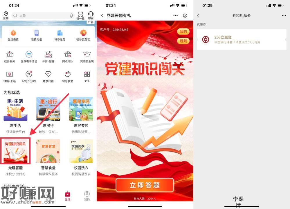 中国银行甘肃,生活答题,每天可答一次,第一次就答对5道题,可以兑换2立减,分高兑换实物,没有时间限制,百度尽量全对