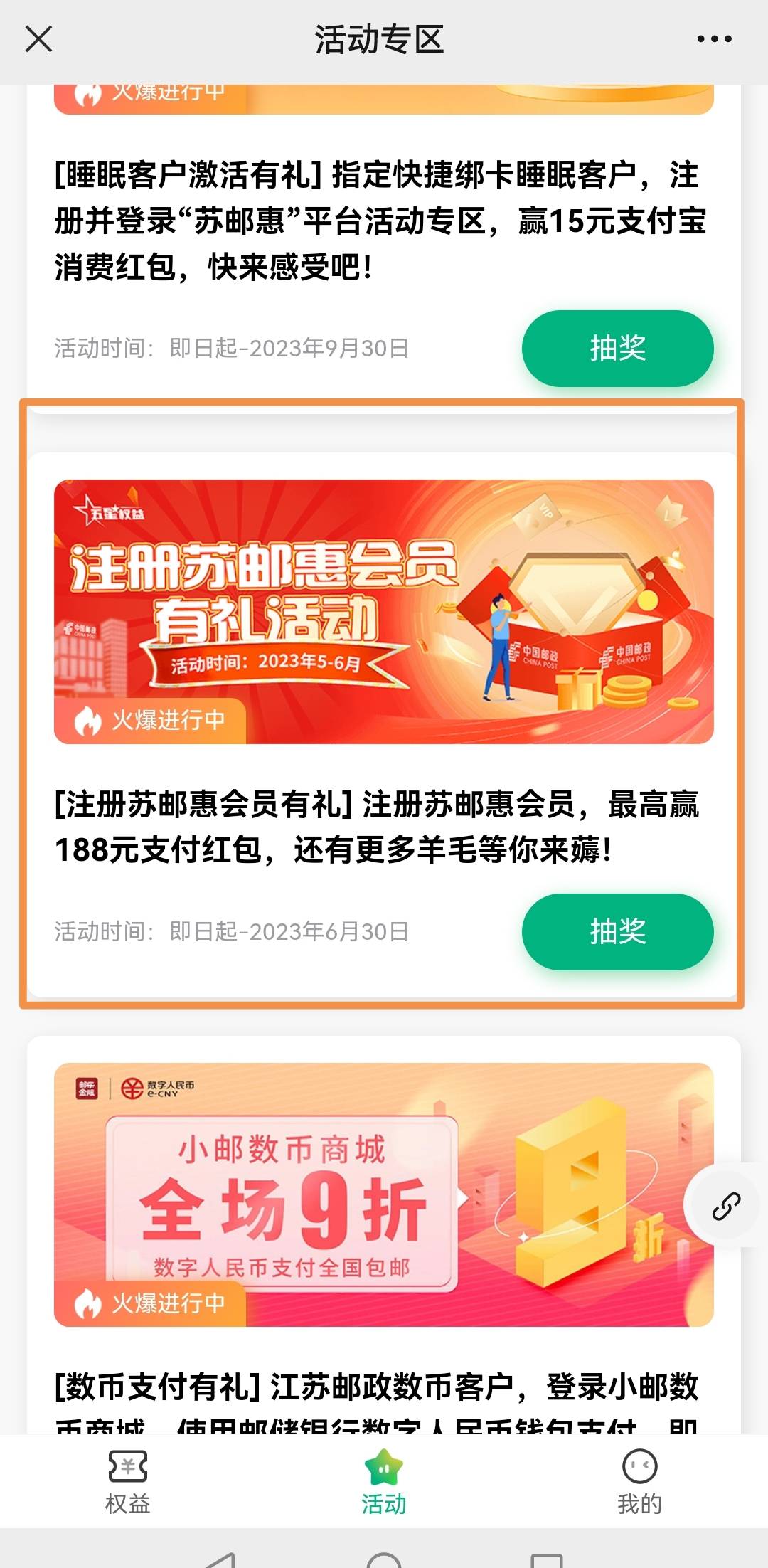 加精大毛一实名188+8.88+3.88江苏邮储微金融gzh苏邮惠我来发下史诗级教程 首先要领188必需要3个微信3个手机号。 1:这个活动抽到奖励直接发到手机号绑定的zfb,这里需要注意用哪个手机号抽得记得先绑定zfb,要不然发放不成功号就废了。 2:注意了点抽奖然后不需要等转,点了抽奖就返回或者刷新就可以了,基本上第一个微信第一次转就是3.88 3:然后换微信号继续抽8.88(这个好抽几十次也就可以了) 4:最后一个微信直接去抽188总之点过抽奖就刷新或者返回重复操作,什么时候提示图片这样188就来了。毕竟188运气好几分钟,运气不好就不好说了。 5:zfb直接换绑手机号就可以了。微信换号教程看图, 总结毕业了 3个188 江苏电子卡T就可以了。