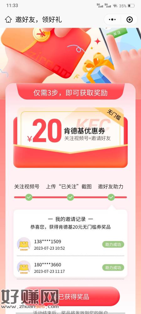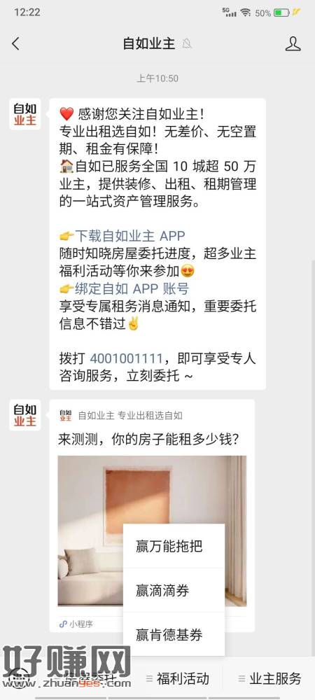 自如业主中间肯德基,25号发奖励,99可以卖15左右(需要拉20个,以前关注公众号的也算新用户,因为他这个是新的关注视频号)
