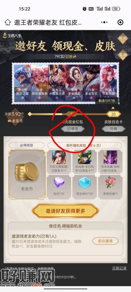 邀请奖励已经发放完毕,等于无头,只剩皮肤,这游戏狗都不玩,皮肤白送都不要!