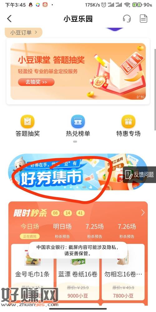 农行app小豆乐园,好券集市,京东e卡好价,有豆的去