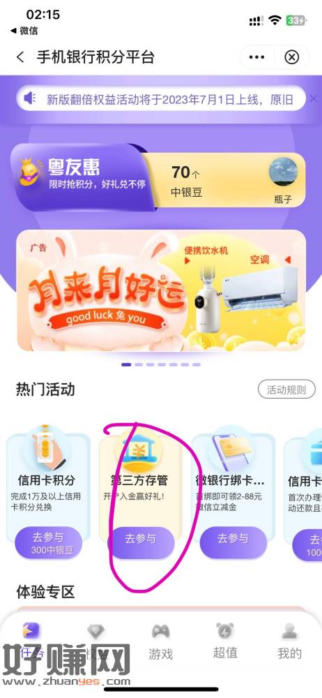 中行大毛,找到图一的位置,不知道是不是广东才有,点报名然后你
