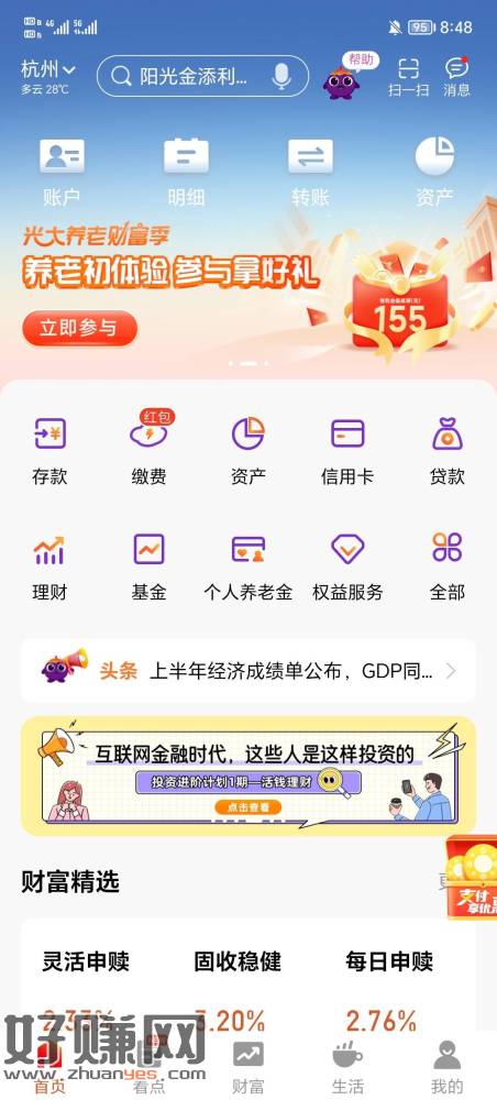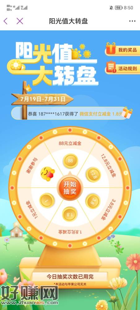 光大的小毛,在首页右下角,去看下规则,每日抽奖必中1.8,立