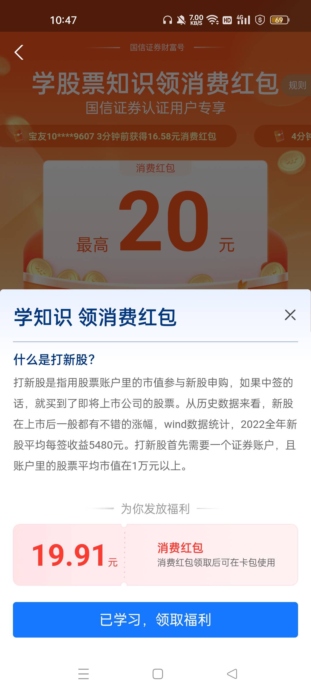 国信证券支付宝开户,送了19跟5000黄金票,总共24点多润