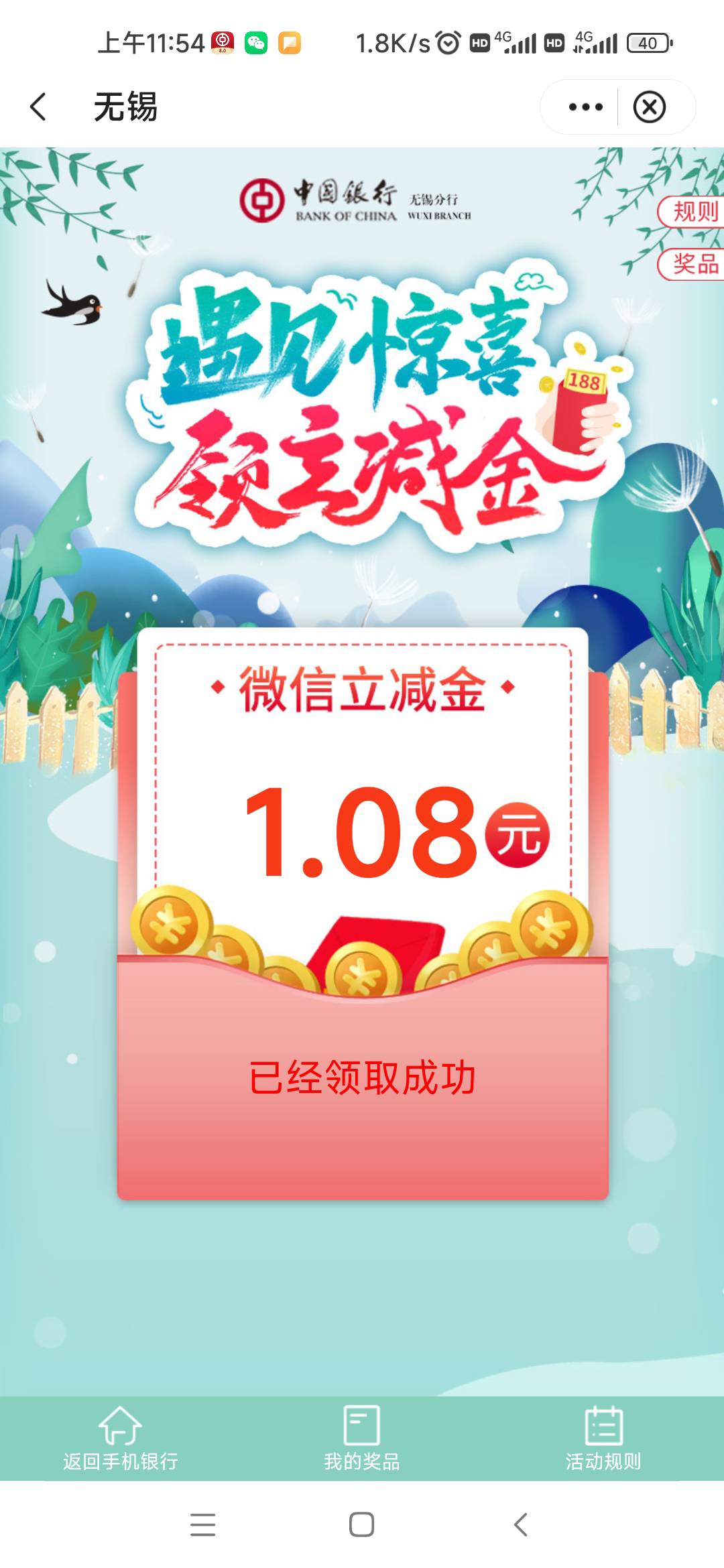 江苏无锡中行,生活专属登入礼,支付一分钱抽立减金,不知道江苏其他地区可