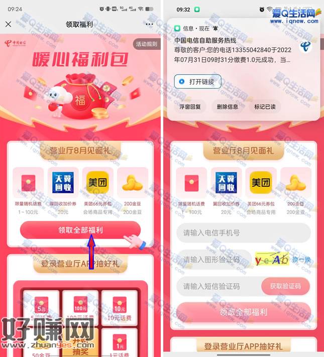 只要是电信用户就可以参加哦,直接领取8月见面礼