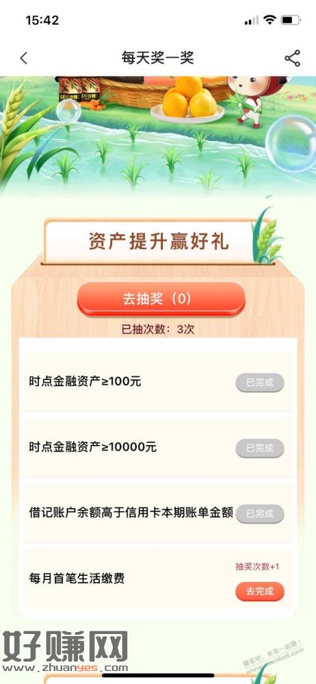 中信app,搜每天奖一奖,任务3次,抽到3个1元微信立减金