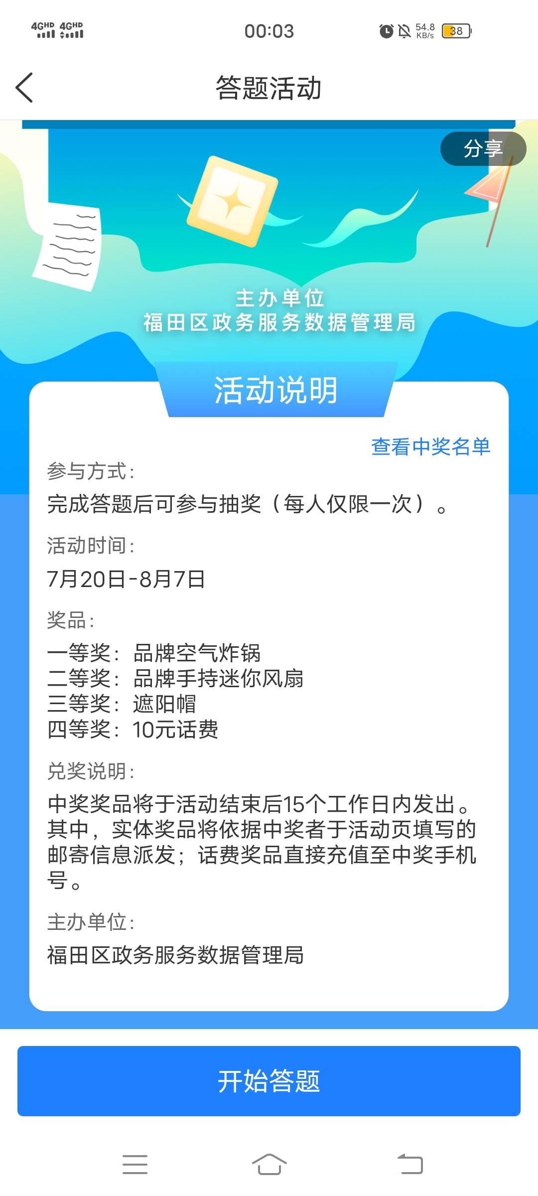 首发,i深圳app,福田区答题,6题随便答,2分钟搞定,随便填。