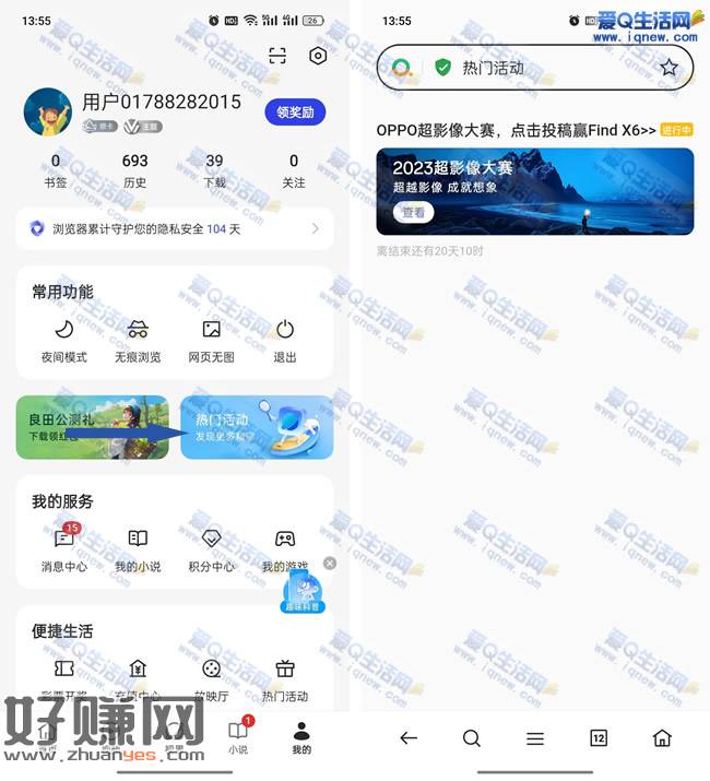 OPPO旗下手机 打开自带的【手机浏览器】APP-我的-【热门活动】-【2023超级影象大赛】去投稿