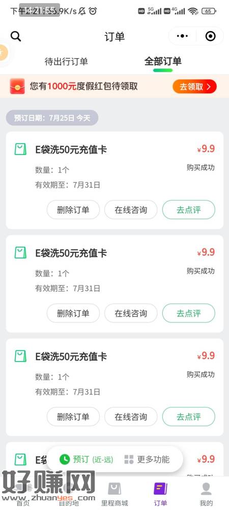 同城旅行弄得里程可以买E袋洗充值卡 闲鱼出 我找的这个人32