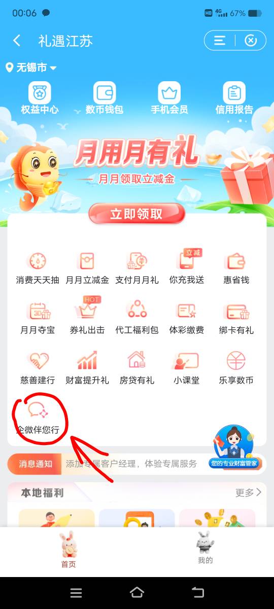 今日来个首发,建行礼遇江苏活动,我没加过企薇,可以领三个,最高15最低1,