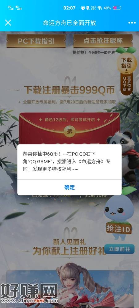 命运方舟玩了的 可以领6qb