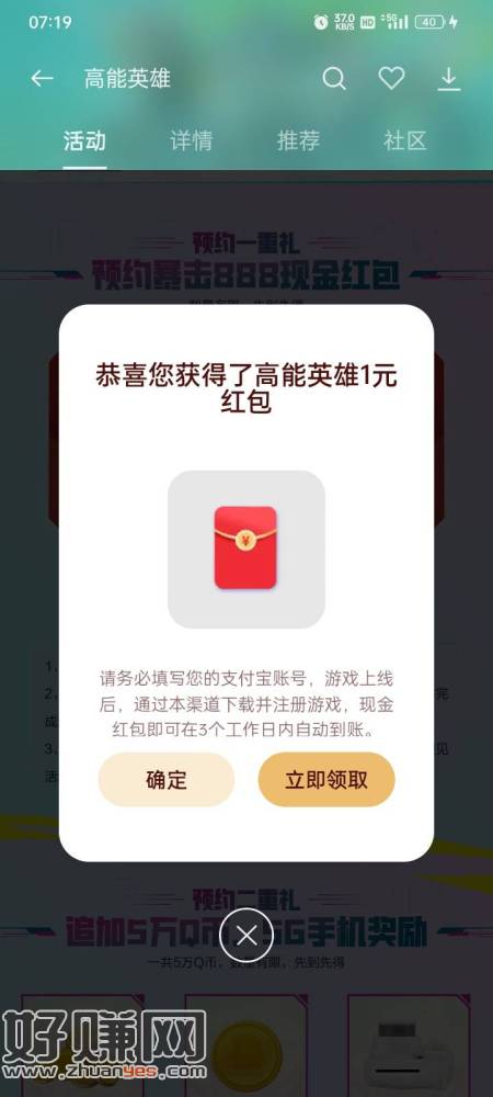 oppo游戏中心预约高能英雄抽奖必中低保1r,进入游戏中心点那个高能英雄广告进去预约