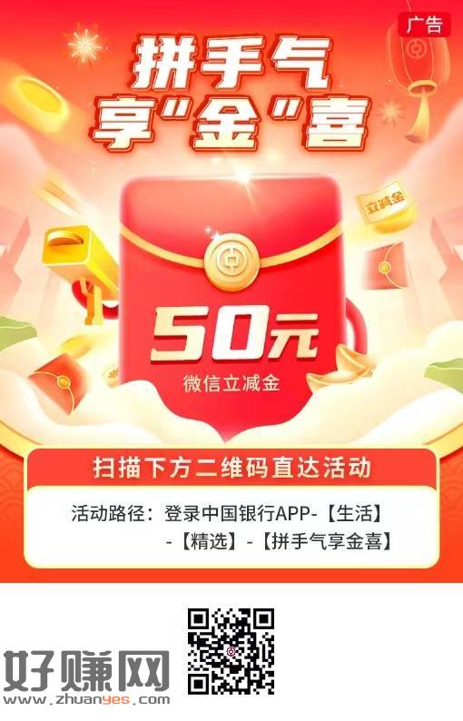 新的河北中行手机银行扫得50元立减金,只限河北别的地区不用扫。