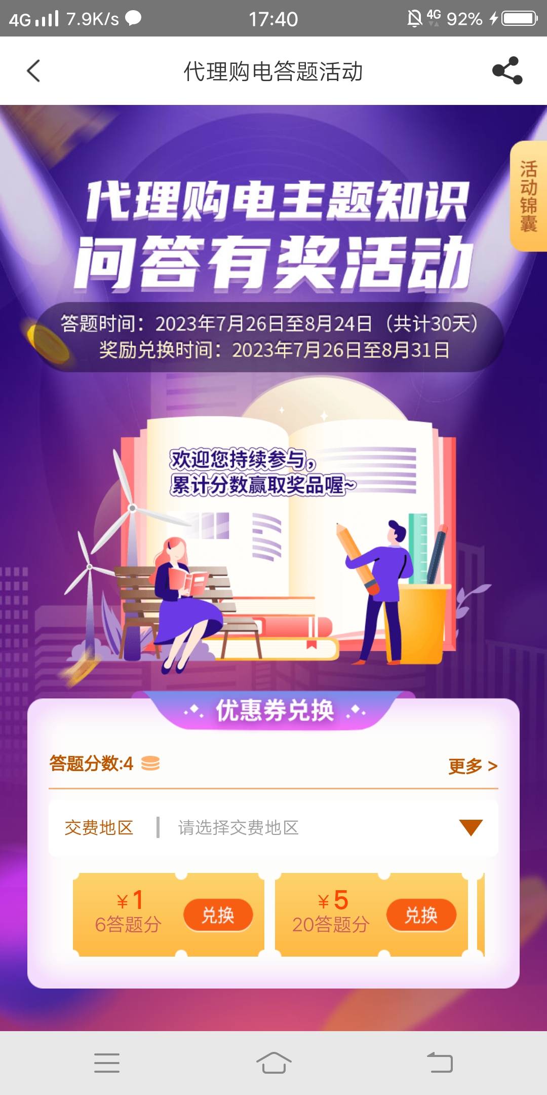 不怕麻烦的老哥可以试试,每天花一分钟答题,一天5分,活动持续一个月,到结束能申请40左右电费,毛量是小了点,没辙
