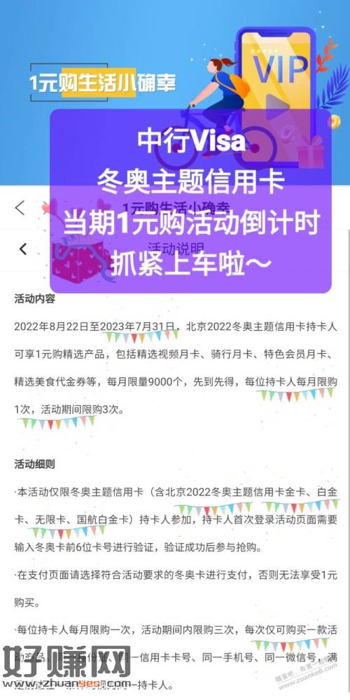 中行Visa冬奥主题xing/用卡1元购活动倒计时