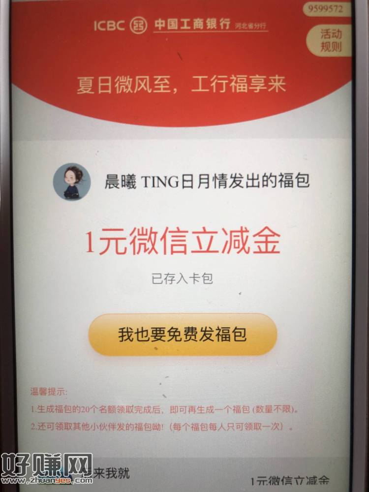 河北工行 立减金 限卡每天领2张 一个v可领5张 可多v