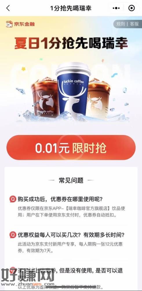 京东支付新用户0.01元可以买12元瑞幸券,上京东两块钱买一