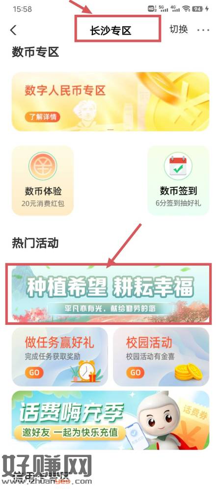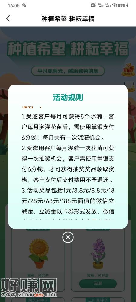 进城市专区,长沙,热门活动,种植希望,耕耘幸福。浇水有礼,保底1毛。每月一次。