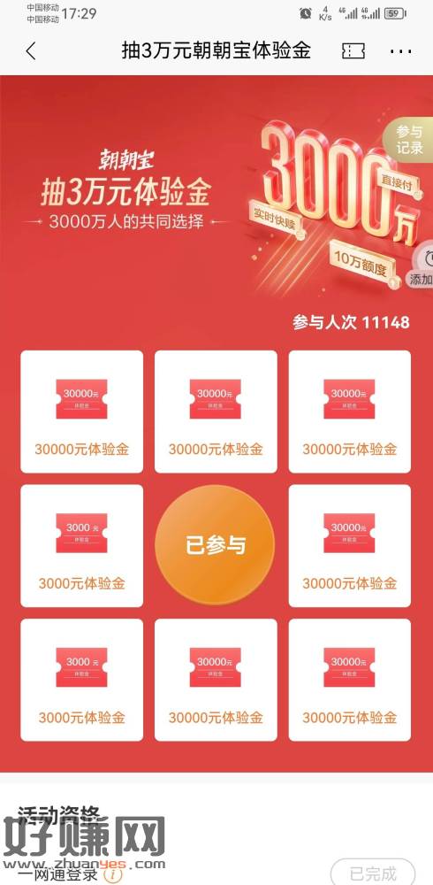 招行app首页活动横幅,可以抽朝朝宝体验金,速去数量有限