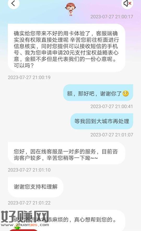 中信卡非柜的,可以找客服申请20zfb通用权益金