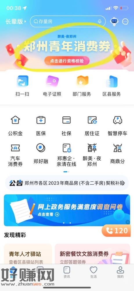 郑来办App,明天9点,在郑州的18到40岁领100减50卷