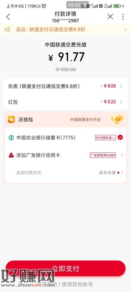 陈年老活动 联通APP购买充值卡100-8 然后出掉 咸
