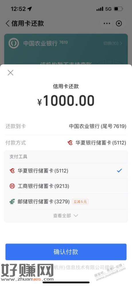 山东。支付宝。邮储还款。1000减5